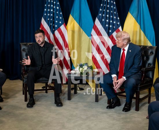 FILE Ñ UkraineÕs President Volodymyr Zelenskyy, and President Donald Trump meet at the United Nations during its General Assembly, in New York, Sept. 23, 2025. As Russia rebuffs President TrumpÕs diplomatic push, a Ukrainian delegation that includes Zelenskyy begins a multi-day White House visit on Tuesday, October. 14, 2025, this time seeking missiles. (Doug Mills/The New York Times/Fotoarena)
