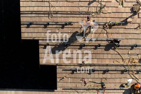 ny190725200811 Installers prepare a residence?s roof for solar panels in a Las Vegas neighborhood, June 5, 2025. Nevada has the highest solar electricity generation per capita in the country, as well as the most solar-industry jobs per capita, and around a third of all the state?s energy demand is met by solar panels. (Bridget Bennett/The New York Times/Fotoarena)