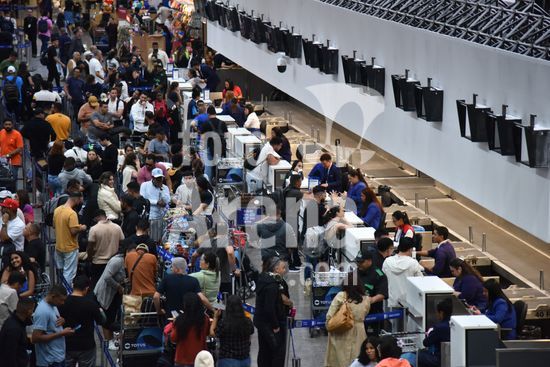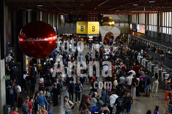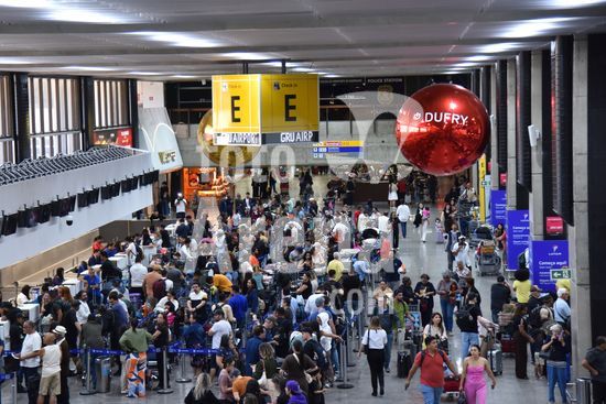 2857543 Aeroporto Internacional de Guarulhos tem voos cancelados e operação afetada devido aos efeitos do ciclone extratropical, nesta quinta feira (11). Na foto fila de passageiros aguardando.