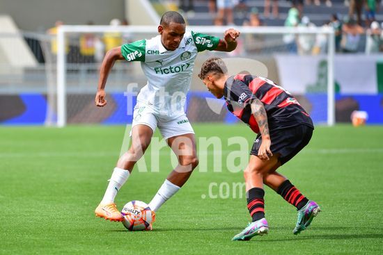 2868760 Eduardo do Palmeiras e Marcos do Flmengo disputam a bola durante partida entre Palmeiras x AA Flamengo SP, válida pela terceira fase da Copa São Paulo de Futebol Júnior 2026, nesta quinta feira (15), na Arena Crefisa Barueri, em Barueri, SP.