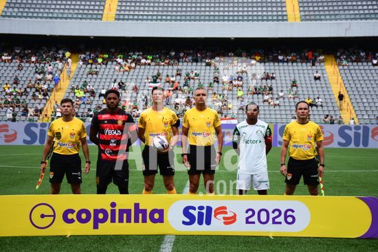 2868743 Equipe de arbitragem e capitães dos times durante partida entre Palmeiras x AA Flamengo SP, válida pela terceira fase da Copa São Paulo de Futebol Júnior 2026, nesta quinta feira (15), na Arena Crefisa Barueri, em Barueri, SP.