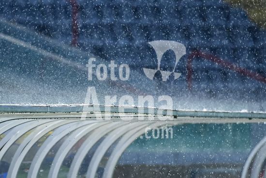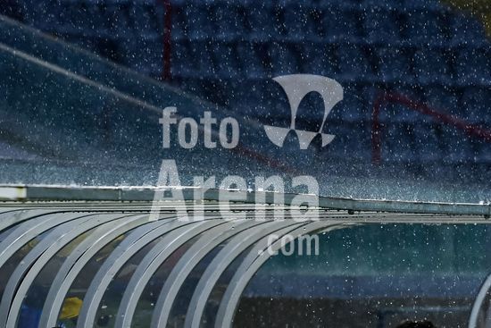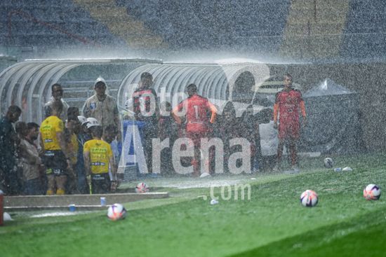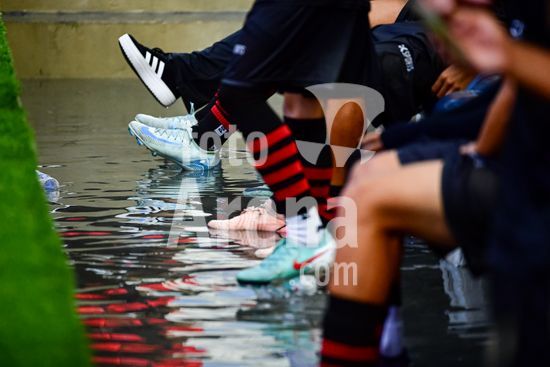 2868750 Banco de reservas do Flamengo com acumulo de água devido a chuva forte durante partida entre Palmeiras x AA Flamengo SP, válida pela terceira fase da Copa São Paulo de Futebol Júnior 2026, nesta quinta feira (15), na Arena Crefisa Barueri, em Barueri, SP.