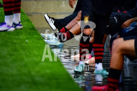 2868749 Banco de reservas do Flamengo com acumulo de água devido a chuva forte durante partida entre Palmeiras x AA Flamengo SP, válida pela terceira fase da Copa São Paulo de Futebol Júnior 2026, nesta quinta feira (15), na Arena Crefisa Barueri, em Barueri, SP.