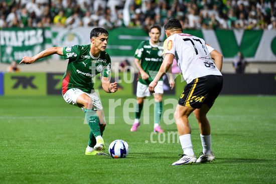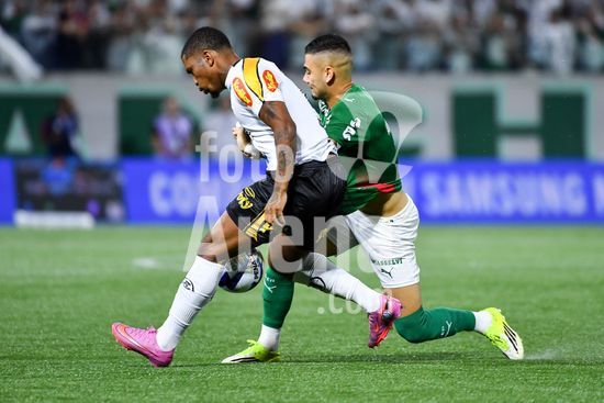 2898564 Vinicius Paiva do Novorizontino e Joaquín Piquerez do Palmeiras disputam a bola, durante partida entre Palmeiras x Novorizontino, primeiro jogo da Final do Campeonato Paulista de Futebol 2026, nesta quarta feira (4), na Arena Crefisa Barueri, em Barueri, SP.