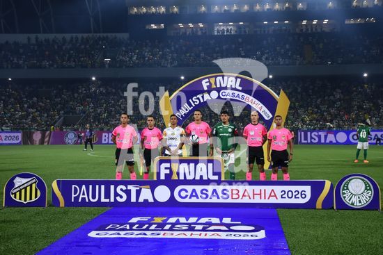 2898661 Equipe de arbitragem e capitães dos times durante partida entre Palmeiras x Novorizontino, primeiro jogo da Final do Campeonato Paulista de Futebol 2026, nesta quarta feira (4), na Arena Crefisa Barueri, em Barueri, SP.
