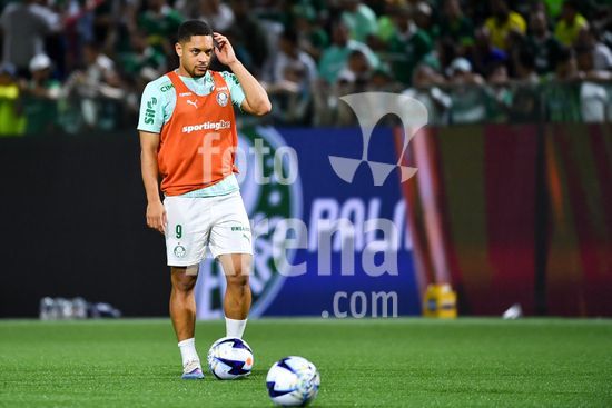 2898674 Vitor Roque do Palmeiras durante aquecimento para a partida entre Palmeiras x Novorizontino, primeiro jogo da Final do Campeonato Paulista de Futebol 2026, nesta quarta feira (4), na Arena Crefisa Barueri, em Barueri, SP.