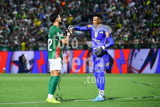 2898688 López do Palmeiras e Jordi do Novorizontino ajudam a retira pipa do campo durante partida entre Palmeiras x Novorizontino, primeiro jogo da Final do Campeonato Paulista de Futebol 2026, nesta quarta feira (4), na Arena Crefisa Barueri, em Barueri, SP.