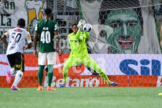 2898412 C. Miguel do Palmeiras defende pênalti durante partida entre Palmeiras x Novorizontino, primeiro jogo da Final do Campeonato Paulista de Futebol 2026, nesta quarta feira (4), na Arena Crefisa Barueri, em Barueri, SP.