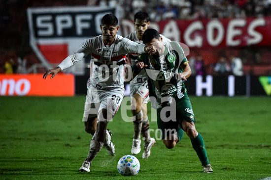 2903739 disputa de bola, durante partida entre São Paulo FC x Chapecoense, válida pela quinta rodada do Campeonato Brasileiro de Futebol 2026, nesta quinta feira (12), no estádio do Canindé, SP.