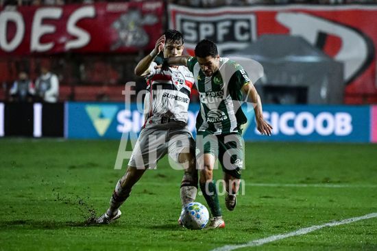 2903741 A. Franco do São Paulo e Marcinho da Chapecoense disputam a bola, durante partida entre São Paulo FC x Chapecoense, válida pela quinta rodada do Campeonato Brasileiro de Futebol 2026, nesta quinta feira (12), no estádio do Canindé, SP.