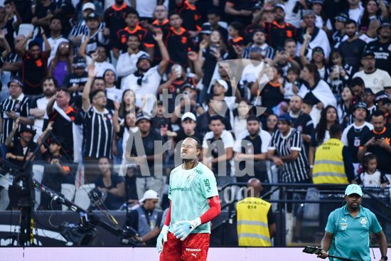 2923629 C. Miguel do Palmeiras durante aquecimento e a torcida do Corinthians ao fundo durante a partida entre Corinthians x Palmeiras, válida pela decima primeira rodada do Campeonato Brasileiro de Futebol 2026, neste domingo (12), na Neo Química Arena, SP.