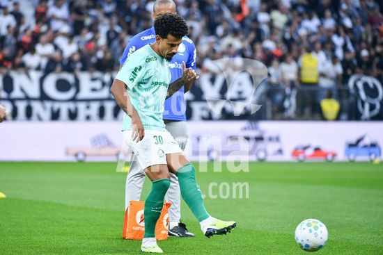2923630 Lucas Evangelista do Palmeiras durante aquecimento para a partida entre Corinthians x Palmeiras, válida pela decima primeira rodada do Campeonato Brasileiro de Futebol 2026, neste domingo (12), na Neo Química Arena, SP.