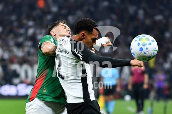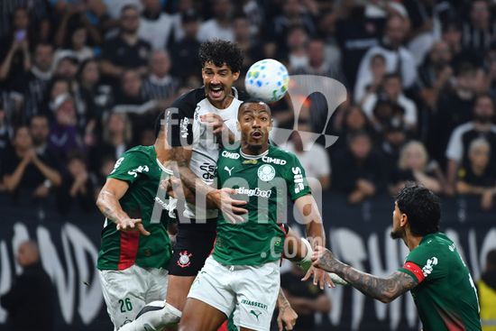 2923653 Matheuzinho do Corinthians e Khellven do Palmeiras disputando a bola, durante partida entre Corinthians x Palmeiras, válida pela decima primeira rodada do Campeonato Brasileiro de Futebol 2026, neste domingo (12), na Neo Química Arena, SP.