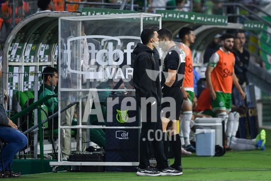 2821896 O árbitro Davi De Oliveira Lacerda na cabine do Var durante partida entre Palmeiras x Juventude, válida pela décima segunda rodada do Campeonato Brasileiro de Futebol 2025 (partida atrasada), neste sábado (11), no Allianz Parque, SP.