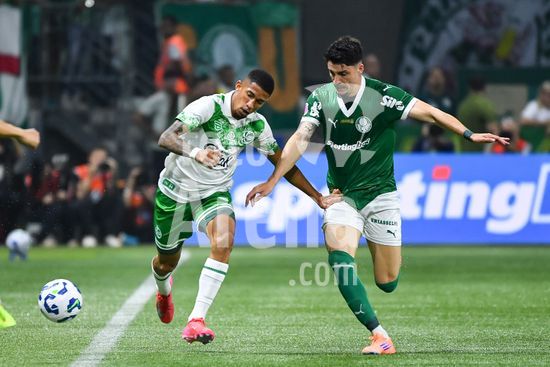 2821907 Igor Formiga do Juventude (E) e Joaquín Piquerez do Palmeiras (D) disputam a bola, durante partida entre Palmeiras x Juventude, válida pela décima segunda rodada do Campeonato Brasileiro de Futebol 2025 (partida atrasada), neste sábado (11), no Allianz Parque, SP.