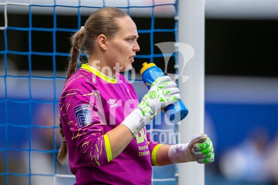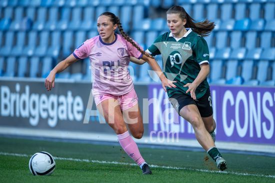 LONDRES, INGLATERRA - 28 DE MARCO: A capita do Bournemouth, Katie James, comemora a vitoria durante a final da FA WNL Cup entre AFC Bournemouth e Plymouth Argyle no Estadio Matrade Loftus Road em 28 de marco em Londres, Inglaterra. (Foto de Mike Turner/Sports Press Photo) (Mike Turner/SPP)
