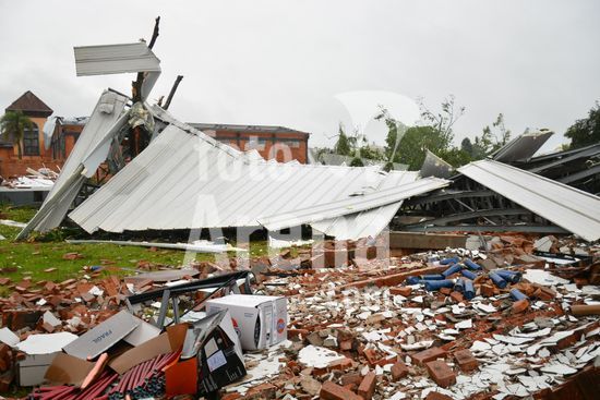 2857108 Parte do teto de um posto de combustíveis desabou na tarde desta quarta-feira (10), no Jardim Cipava em Osasco na Grande São Paulo, devido a um forte vendaval que atinge a região.