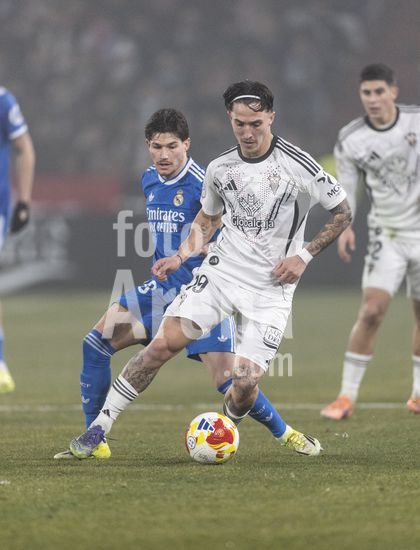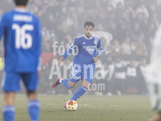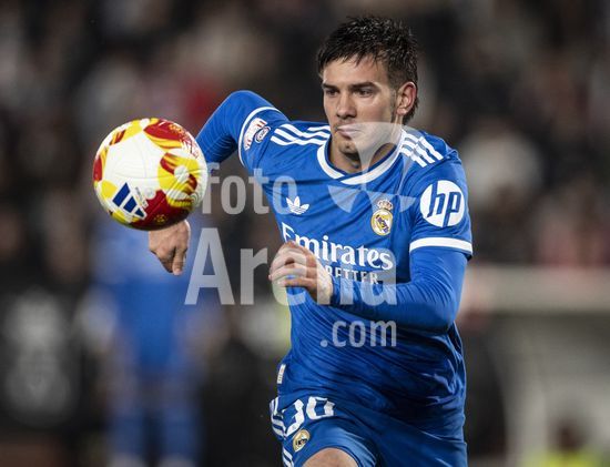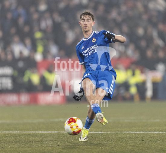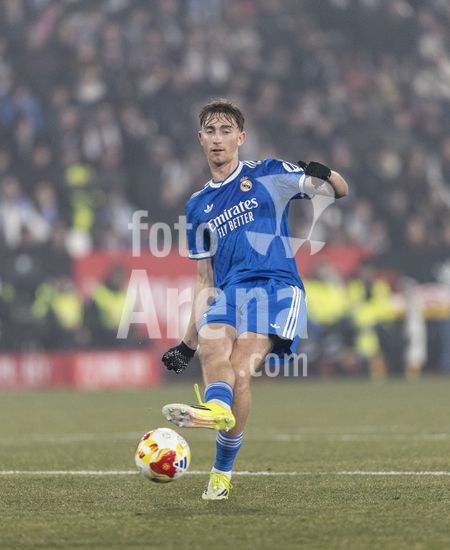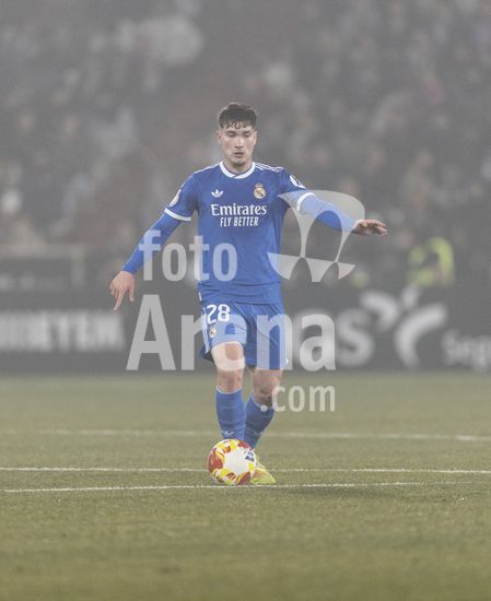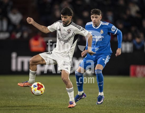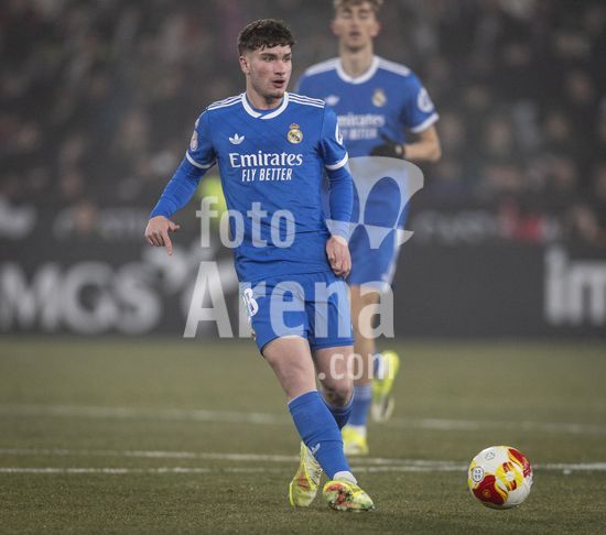 2868360 Raul Asencio, do Real Madrid, passa a bola durante a partida das oitavas de final da Copa del Rey entre Albacete e Real Madrid no Estadio Carlos Belmonte em Albacete, Espanha. (Ricardo Nogueira/SPP)