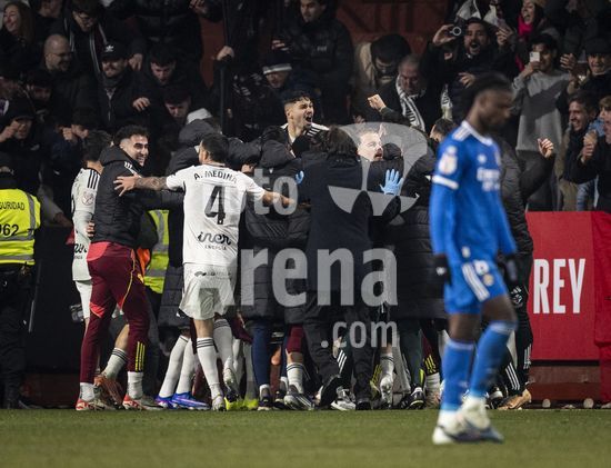 2868386 O Albacete comemora a vitoria por 3 a 2 sobre o Real Madrid, em partida valida pelas oitavas de final da Copa do Rei, no Estadio Carlos Belmonte, em Albacete, Espanha. (Ricardo Nogueira/SPP)