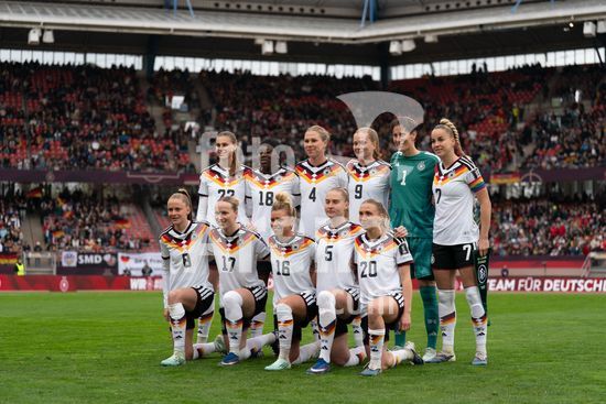 2924594 NUREMBERG, ALEMANHA - 14 DE ABRIL: Foto da selecao alema antes da partida de qualificacao para a Copa do Mundo Feminina da FIFA entre Alemanha e Austria, no Estadio Max Morlock, em Nuremberg, Alemanha, em 14 de abril de 2026. (Qianru Zhang/SPP)