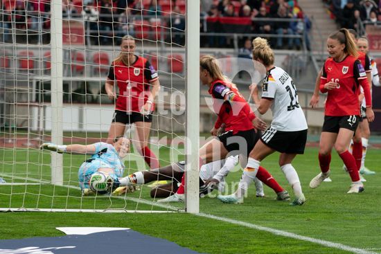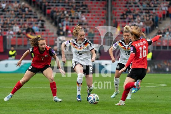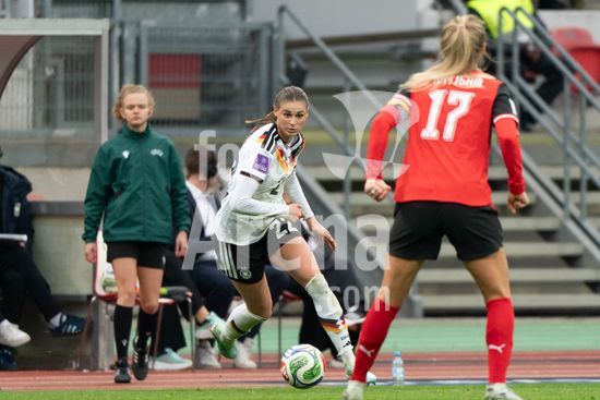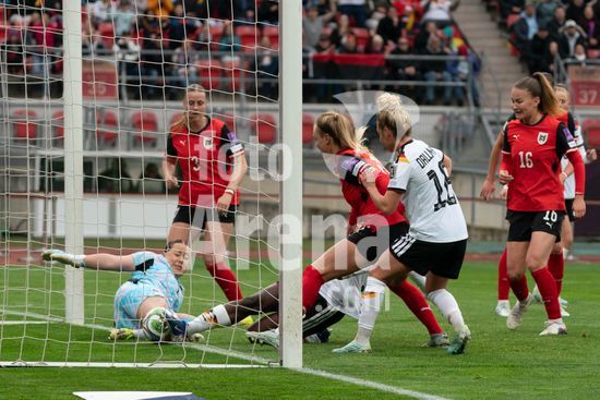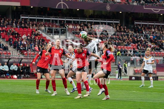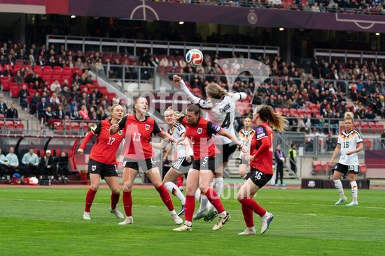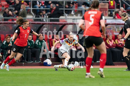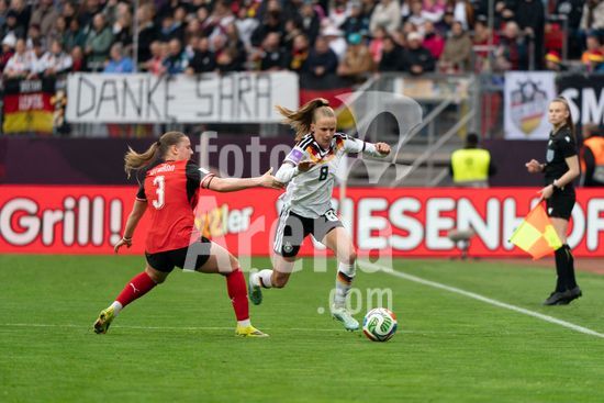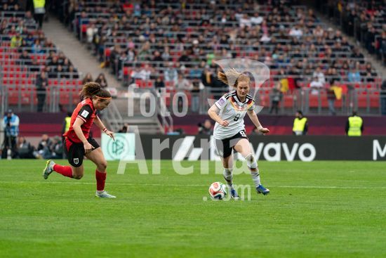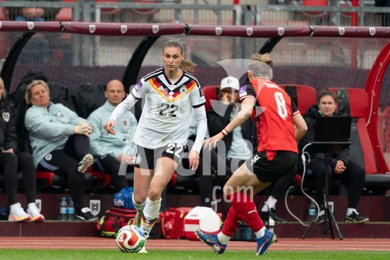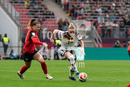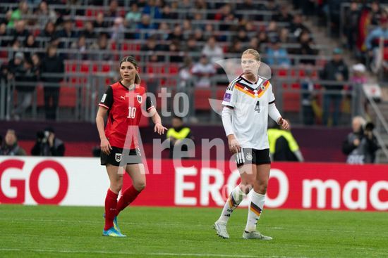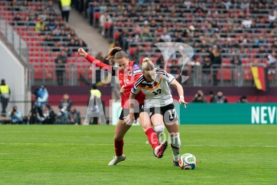2924868 NUREMBERG, ALEMANHA - 14 DE ABRIL: Jule Brand (22 Alemanha) e Sarah Puntigam (17 Austria) durante a partida de qualificacao para a Copa do Mundo Feminina da FIFA entre Alemanha e Austria no Estadio Max-Morlock em Nuremberg, Alemanha, em 14 de abril de 2026. (Qianru Zhang/SPP)