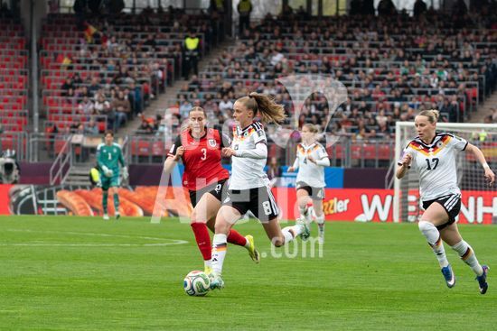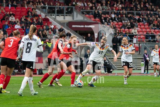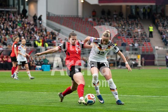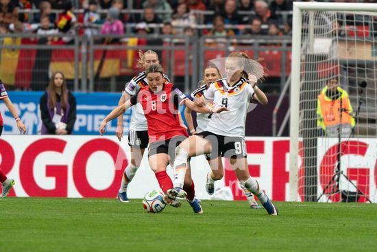 2924724 NUREMBERG, ALEMANHA - 14 DE ABRIL: Franziska Kett (17 Alemanha) e Melanie Brunnthaler (7 Austria) durante a partida de qualificacao para a Copa do Mundo Feminina da FIFA entre Alemanha e Austria no Estadio Max-Morlock em Nuremberg, Alemanha, em 14 de abril de 2026. (Qianru Zhang/SPP)