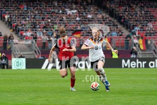 2924726 NUREMBERG, ALEMANHA - 14 DE ABRIL: Sjoeke Nusken (9 Alemanha) durante a partida de qualificacao para a Copa do Mundo Feminina da FIFA entre Alemanha e Austria no Max-Morlock-Stadion em 14 de abril de 2026 em Nuremberg, Alemanha. (Qianru Zhang/SPP)