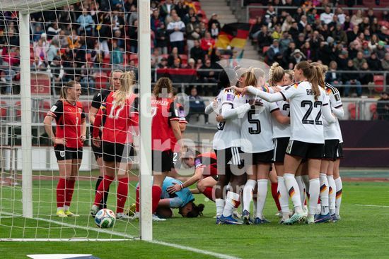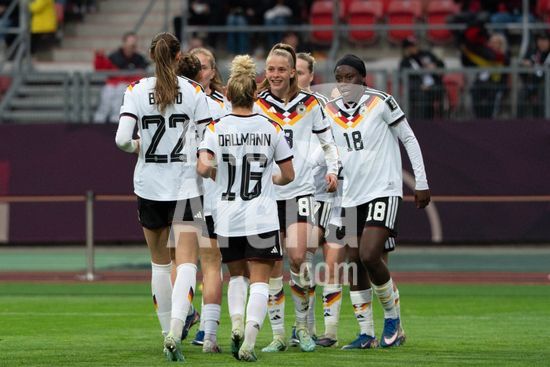 2924720 NUREMBERG, ALEMANHA - 14 DE ABRIL: Jogadoras da Alemanha comemoram o gol durante a partida de qualificacao para a Copa do Mundo Feminina da FIFA entre Alemanha e Austria, no Estadio Max Morlock, em Nuremberg, Alemanha, em 14 de abril de 2026. (Qianru Zhang/SPP)