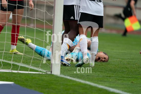 2924728 NUREMBERG, ALEMANHA - 14 DE ABRIL: A goleira Mariella El Sherif (1 Austria) durante a partida de qualificacao para a Copa do Mundo Feminina da FIFA entre Alemanha e Austria no Estadio Max-Morlock em Nuremberg, Alemanha, em 14 de abril de 2026. (Qianru Zhang/SPP)