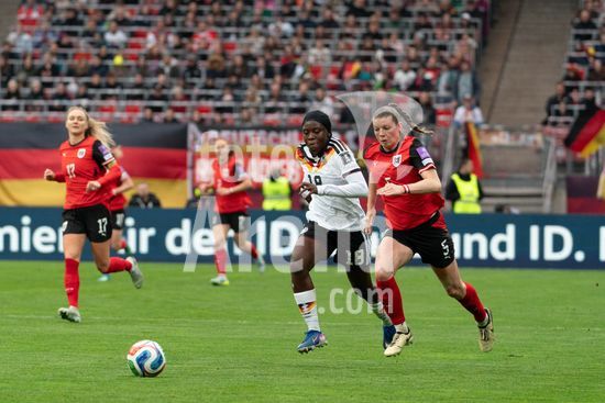 2924722 NUREMBERG, ALEMANHA - 14 DE ABRIL: Nicole Anyomi (18 Alemanha) e Claudia Wenger (5 Austria) durante a partida de qualificacao para a Copa do Mundo Feminina da FIFA entre Alemanha e Austria no Estadio Max-Morlock em Nuremberg, Alemanha, em 14 de abril de 2026. (Qianru Zhang/SPP)