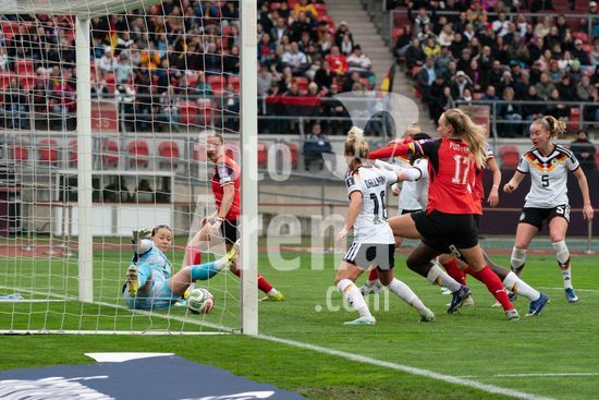 2924870 NUREMBERG, ALEMANHA - 14 DE ABRIL: Nicole Anyomi (18 Alemanha) marca o gol durante a partida de qualificacao para a Copa do Mundo Feminina da FIFA entre Alemanha e Austria no Estadio Max-Morlock em Nuremberg, Alemanha, em 14 de abril de 2026. (Qianru Zhang/SPP)