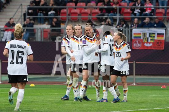2924890 NUREMBERG, ALEMANHA - 14 DE ABRIL: Jogadoras da Alemanha comemoram o gol durante a partida de qualificacao para a Copa do Mundo Feminina da FIFA entre Alemanha e Austria, no Estadio Max-Morlock, em Nuremberg, Alemanha, em 14 de abril de 2026. (Qianru Zhang/SPP)