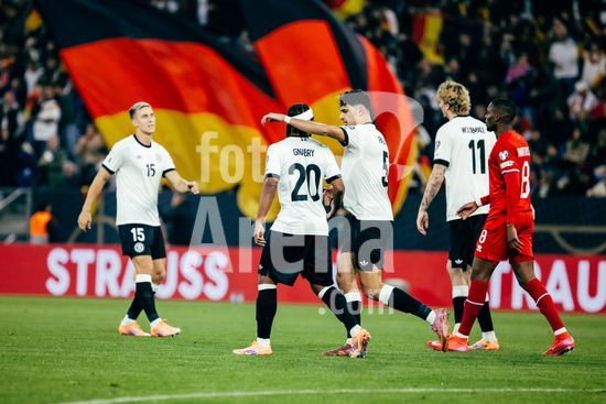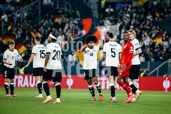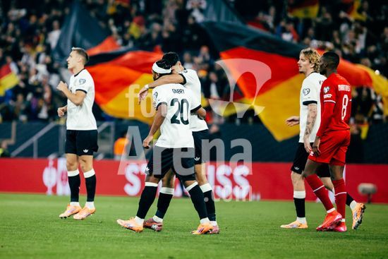 2821340 Sinsheim, Alemanha, 10 de outubro de 2025. Serge Gnabry (#20 - Alemanha) comemora seu gol de 3 a 0 com seus companheiros de equipe durante a partida das Eliminatorias Europeias da UEFA entre Alemanha e Luxemburgo na PreZero Arena, em Sinsheim, Alemanha. (Gabor Baumgarten / SPP) (Gabor Baumgarten / SPP)