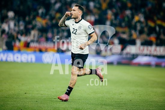 2820994 Sinsheim, Alemanha, 10 de outubro de 2025. David Raum (#22 - Alemanha) comemora o gol de 2 a 0 durante a partida das Eliminatorias Europeias da UEFA entre Alemanha e Luxemburgo na PreZero Arena, em Sinsheim, Alemanha. (Gabor Baumgarten / SPP) (Gabor Baumgarten / SPP)
