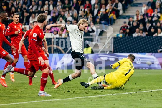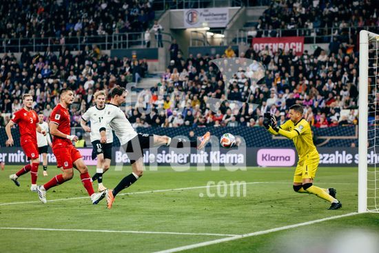 2821141 Sinsheim, Alemanha, 10 de outubro de 2025. Nick Woltemade (#11 - Alemanha) teve uma chance com uma defesa de Anthony Moris (#1 - Luxemburgo) durante a partida das Eliminatorias Europeias da UEFA entre Alemanha e Luxemburgo na PreZero Arena, em Sinsheim, Alemanha. (Gabor Baumgarten / SPP) (Gabor Baumgarten / SPP)