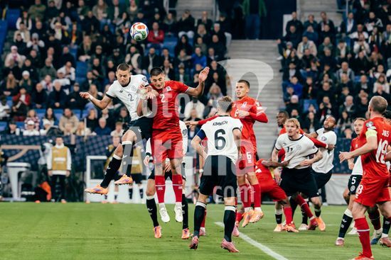 2821154 Sinsheim, Alemanha, 10 de outubro de 2025. Waldemar Anton (#2 - Alemanha) cabeceia durante a partida das Eliminatorias Europeias da UEFA entre Alemanha e Luxemburgo na PreZero Arena, em Sinsheim, Alemanha. (Gabor Baumgarten / SPP) (Gabor Baumgarten / SPP)