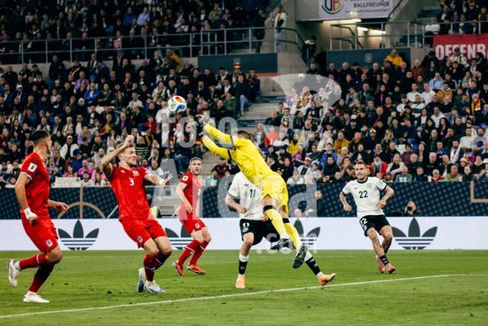2821157 Sinsheim, Alemanha, 10 de outubro de 2025. Anthony Moris (#1 - Luxemburgo) defende durante a partida das Eliminatorias Europeias da UEFA entre Alemanha e Luxemburgo na PreZero Arena, em Sinsheim, Alemanha. (Gabor Baumgarten / SPP) (Gabor Baumgarten / SPP)