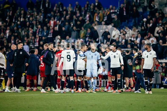 2821532 Sinsheim, Alemanha, 10 de outubro de 2025. Comemoracao da selecao alema apos a vitoria com aperto de mao durante a partida das Eliminatorias Europeias da UEFA entre Alemanha e Luxemburgo na PreZero Arena, em Sinsheim, Alemanha. (Gabor Baumgarten / SPP) (Gabor Baumgarten / SPP)