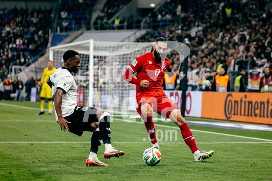 2821171 Sinsheim, Alemanha, 10 de outubro de 2025. Vahid Selimovic (#17 - Luxemburgo) durante a partida das Eliminatorias Europeias da UEFA entre Alemanha e Luxemburgo na PreZero Arena, em Sinsheim, Alemanha. (Gabor Baumgarten / SPP) (Gabor Baumgarten / SPP)