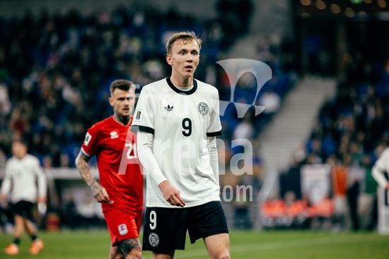 2821173 Sinsheim, Alemanha, 10 de outubro de 2025. Maximilian Beier (#9 - Alemanha) durante a partida das Eliminatorias Europeias da UEFA entre Alemanha e Luxemburgo na PreZero Arena, em Sinsheim, Alemanha. (Gabor Baumgarten / SPP) (Gabor Baumgarten / SPP)