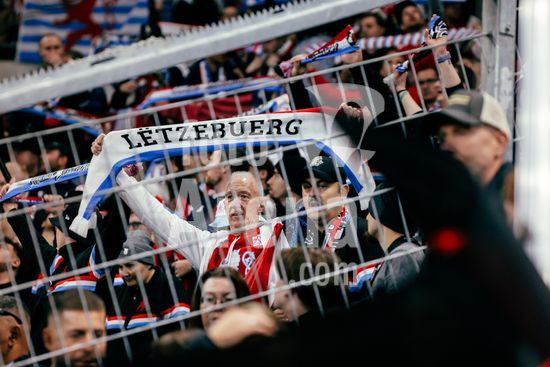 2821174 Sinsheim, Alemanha, 10 de outubro de 2025. Um torcedor luxemburgues com um cachecol nas arquibancadas durante a partida das Eliminatorias Europeias da UEFA entre Alemanha e Luxemburgo na PreZero Arena, em Sinsheim, Alemanha. (Gabor Baumgarten / SPP) (Gabor Baumgarten / SPP)