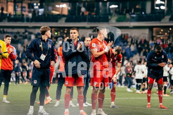 2821185 Sinsheim, Alemanha, 10 de outubro de 2025. Aplausos da equipe luxemburguesa para a torcida apos o jogo das Eliminatorias Europeias da UEFA entre Alemanha e Luxemburgo na PreZero Arena, em Sinsheim, Alemanha. (Gabor Baumgarten / SPP) (Gabor Baumgarten / SPP)