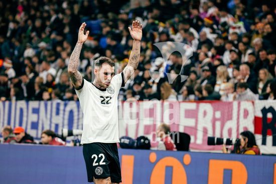 2821019 Sinsheim, Alemanha, 10 de outubro de 2025. David Raum (#22 - Alemanha) comemora o gol de 2 a 0 durante a partida das Eliminatorias Europeias da UEFA entre Alemanha e Luxemburgo na PreZero Arena, em Sinsheim, Alemanha. (Gabor Baumgarten / SPP) (Gabor Baumgarten / SPP)