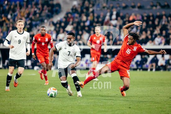 2821190 Sinsheim, Alemanha, 10 de outubro de 2025. Ridle Baku (#7 - Alemanha) em um duelo durante a partida das Eliminatorias Europeias da UEFA entre Alemanha e Luxemburgo na PreZero Arena, em Sinsheim, Alemanha. (Gabor Baumgarten / SPP) (Gabor Baumgarten / SPP)