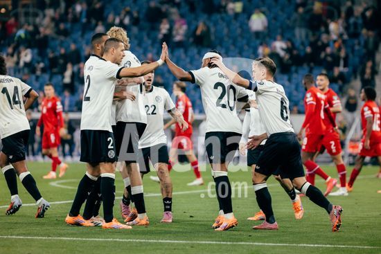 2821183 Sinsheim, Alemanha, 10 de outubro de 2025. Aplausos da equipe luxemburguesa para a torcida apos o jogo das Eliminatorias Europeias da UEFA entre Alemanha e Luxemburgo na PreZero Arena, em Sinsheim, Alemanha. (Gabor Baumgarten / SPP) (Gabor Baumgarten / SPP)