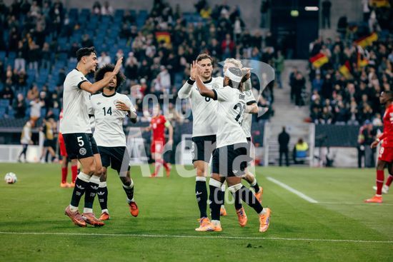 2820995 Sinsheim, Alemanha, 10 de outubro de 2025. David Raum (#22 - Alemanha) comemora o gol de 2 a 0 durante a partida das Eliminatorias Europeias da UEFA entre Alemanha e Luxemburgo na PreZero Arena, em Sinsheim, Alemanha. (Gabor Baumgarten / SPP) (Gabor Baumgarten / SPP)