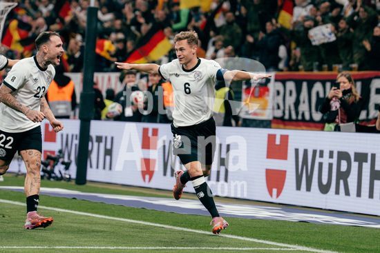 2820989 Sinsheim, Alemanha, 10 de outubro de 2025. Comemoracao de gol de penalti de Joshua Kimmich (#6 - Alemanha) pelo 3 a 0 durante a partida das Eliminatorias Europeias da UEFA entre Alemanha e Luxemburgo na PreZero Arena, em Sinsheim, Alemanha. (Gabor Baumgarten / SPP) (Gabor Baumgarten / SPP)