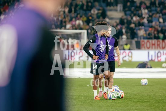 2821503 Sinsheim, Alemanha, 10 de outubro de 2025 Nathaniel Brown (#18 - Alemanha) e Jonathan Burkardt (#19 - Alemanha) no aquecimento durante a partida das Eliminatorias Europeias da UEFA entre Alemanha e Luxemburgo na PreZero Arena, em Sinsheim, Alemanha. (Gabor Baumgarten / SPP) (Gabor Baumgarten / SPP)