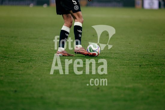 2821528 Sinsheim, Alemanha, 10 de outubro de 2025. Close-up de uma bola nos pes de Aleksandar Pavlovic (#5 - Alemanha) durante a partida das Eliminatorias Europeias da UEFA entre Alemanha e Luxemburgo na PreZero Arena, em Sinsheim, Alemanha. (Gabor Baumgarten / SPP) (Gabor Baumgarten / SPP)