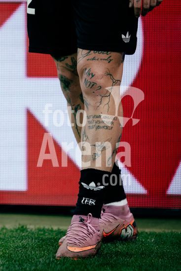 2821531 Sinsheim, Alemanha, 10 de outubro de 2025. Tatuagens na perna de David Raum (#22 - Alemanha) durante a partida das Eliminatorias Europeias da UEFA entre Alemanha e Luxemburgo na PreZero Arena, em Sinsheim, Alemanha. (Gabor Baumgarten / SPP) (Gabor Baumgarten / SPP)